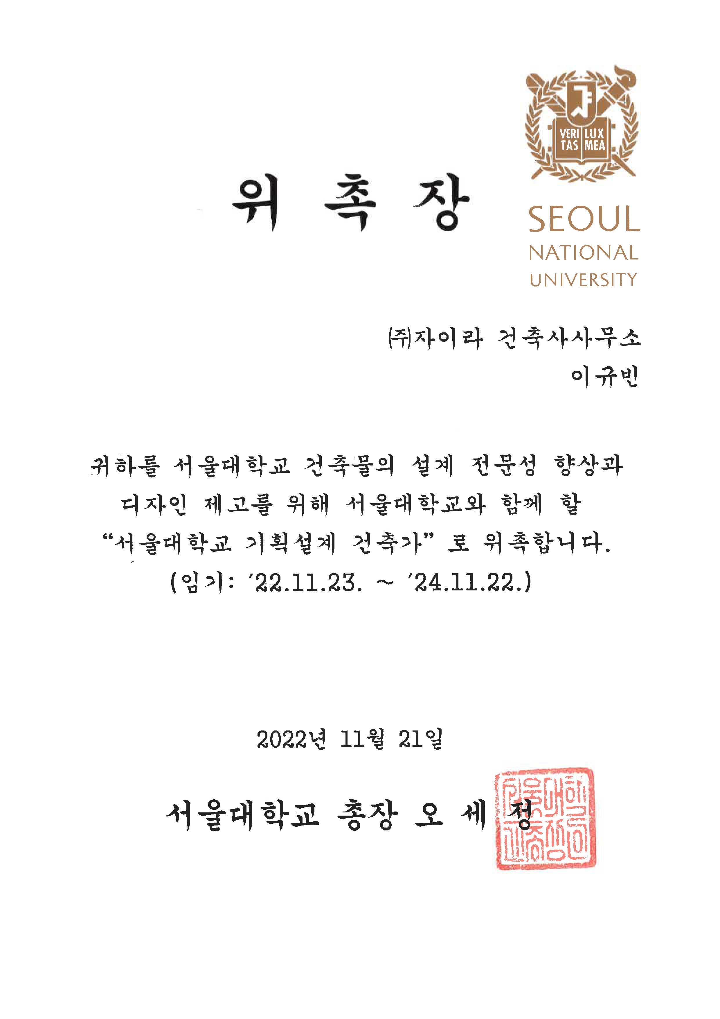 2022. 11 서울대학교 기획설계 건축가 위촉