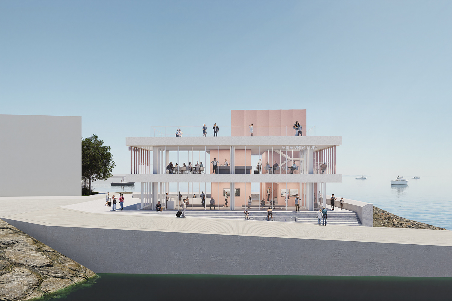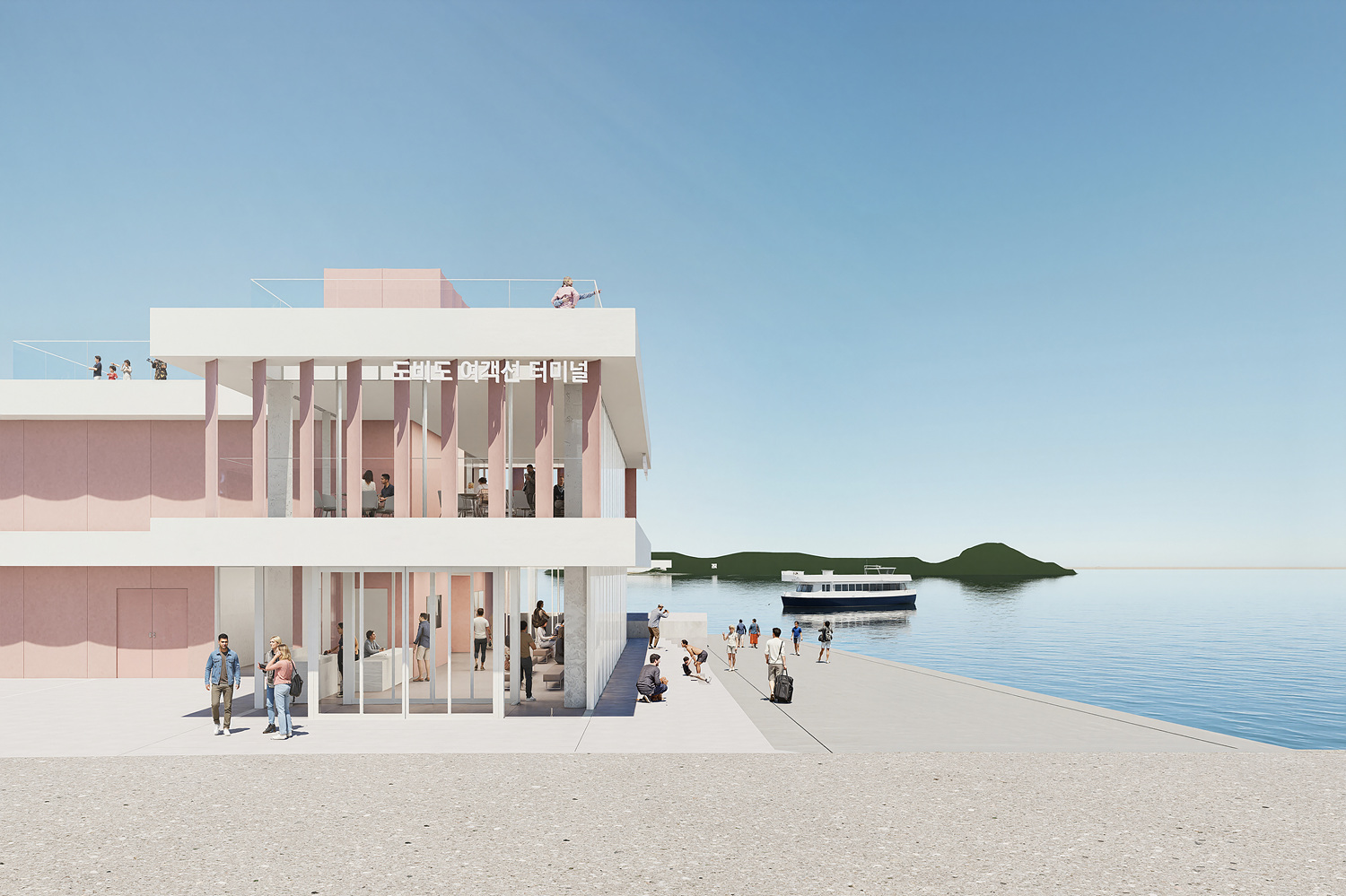 도비도항 여객선터미널은 바다와 항로를 향한 조망, 승·하선의 명확한 흐름, 지역에 열린 공공성을 하나의 수평적 질서로 엮어낸 해안 공공건축이다. 여러 섬을 오가는 항로와 맞닿은 대지의 조건에 응답해, 터미널은 바다를 넓게 조망하는 대합실과 테라스, 누구에게나 열린 계단광장을 중심으로 계획되었다.