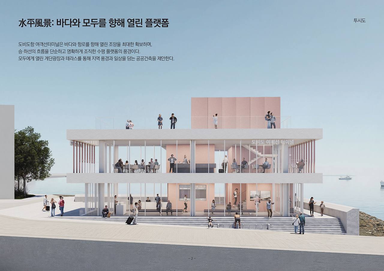 도비도 여객터미널은 바다와 항로를 향해 열린 조망을 최대한 확보하며,